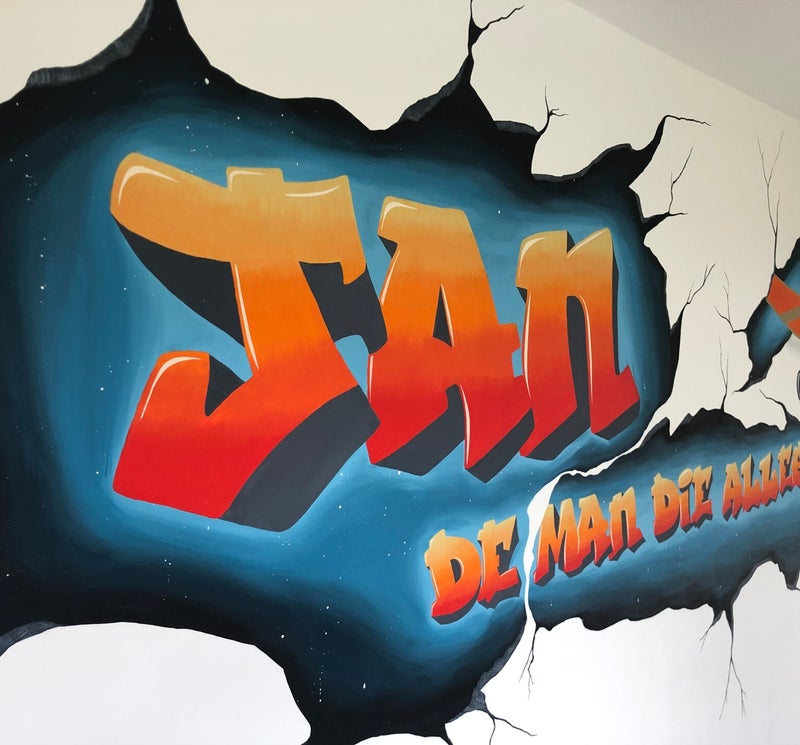 Wat een toffe kinderkamer is dit geworden! De graffiti wand helemaal in stijl met de skateboard lamp. Welk jongetje wil dit niet?