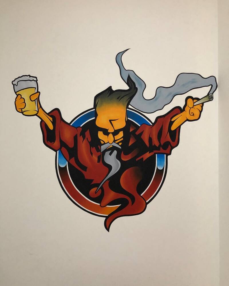 Voor een fan van Thunderdome dit logo in de gang geschilderd. Zodra je binnenkomt door de voordeur wordt je begroet door het logo.